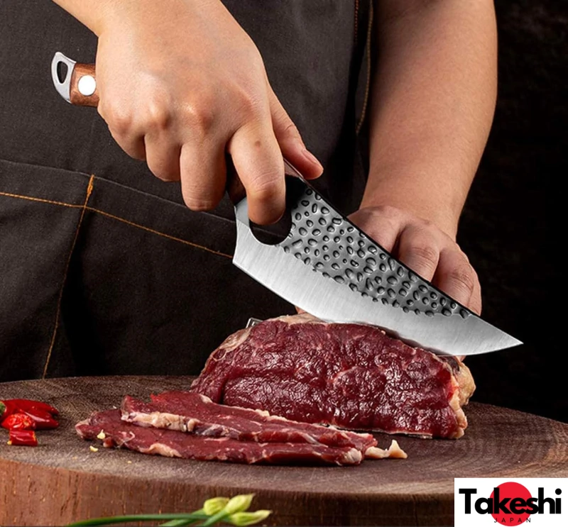 Takeshi peilis puikiai tinka mėsai, daržovėms ir prieskoninėms žolelėms pjaustyti ir kapoti, tačiau jo tvirtumas leidžia jį naudoti ir už virtuvės ribų. Tai ne tik šefų, bet ir universalus patikimas peilis, pritaikomas įvairioms situacijoms.